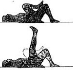 This exercise should not be started until the others have been done for several weeks. Lie on your back with knees bent. Feet flat on the floor. Take a deep breath and relax. Pull up to sitting position keeping knees bent. Return to starting position. Relax. Having someone hold your feet down can facilitate this exercise. Repeat 5-10 times